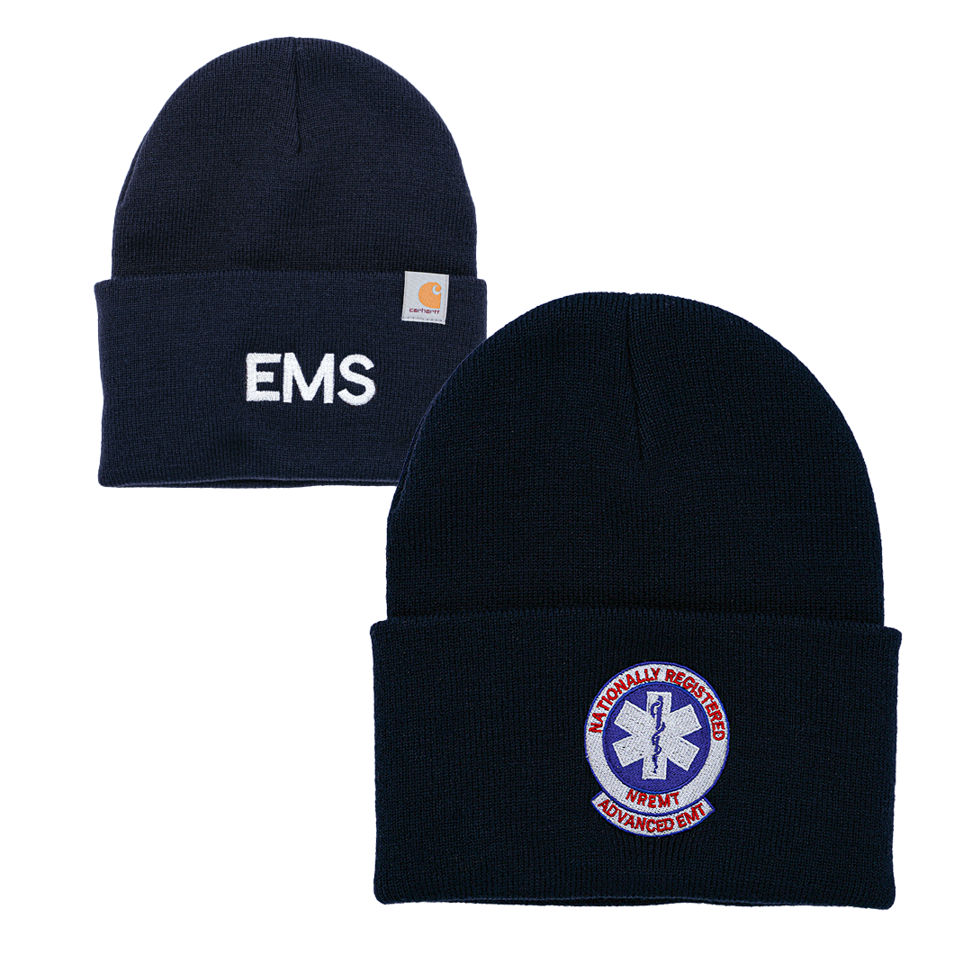 Let the community know you are a Nationally Registered Advanced EMT (AEMT) during the cold months with this premium Carhartt Watch Cap is available in BLUE or BLACK. This is the Carhartt Watch Cap 2.0, an updated version of their classic winter cap. This version includes a bold EMS embroidered on the reverse side.