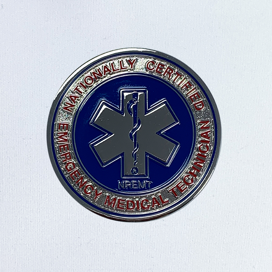 A must-have for any Nationally Registered Emergency Medical Technician or challenge coin collector. This beautifully crafted challenge coin is perfect for highlighting your accomplishment of National Certification or trading with colleagues. Measuring 1.75”, the coin features the same colorful design and Star of Life found on your EMT patch. This is the official EMT challenge coin from the National Registry of EMTs.