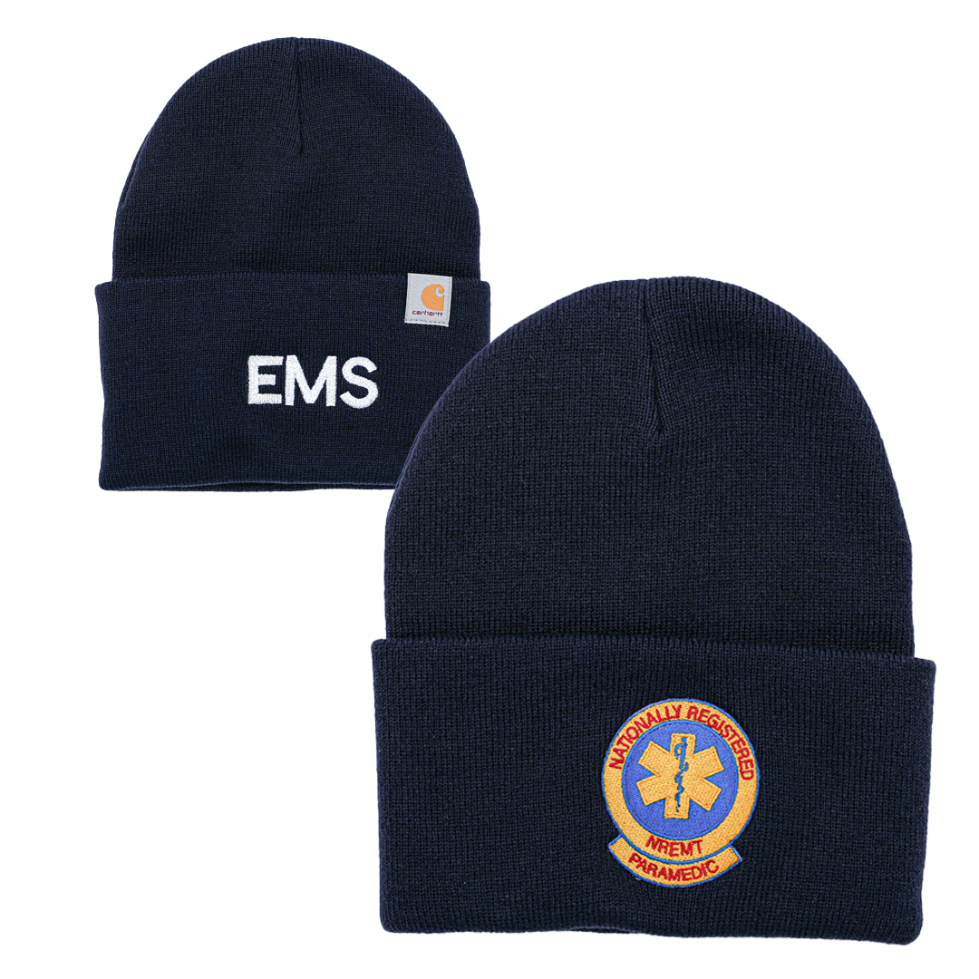 Official Paramedic Carhartt watch cap with EMS embroidery on the back.